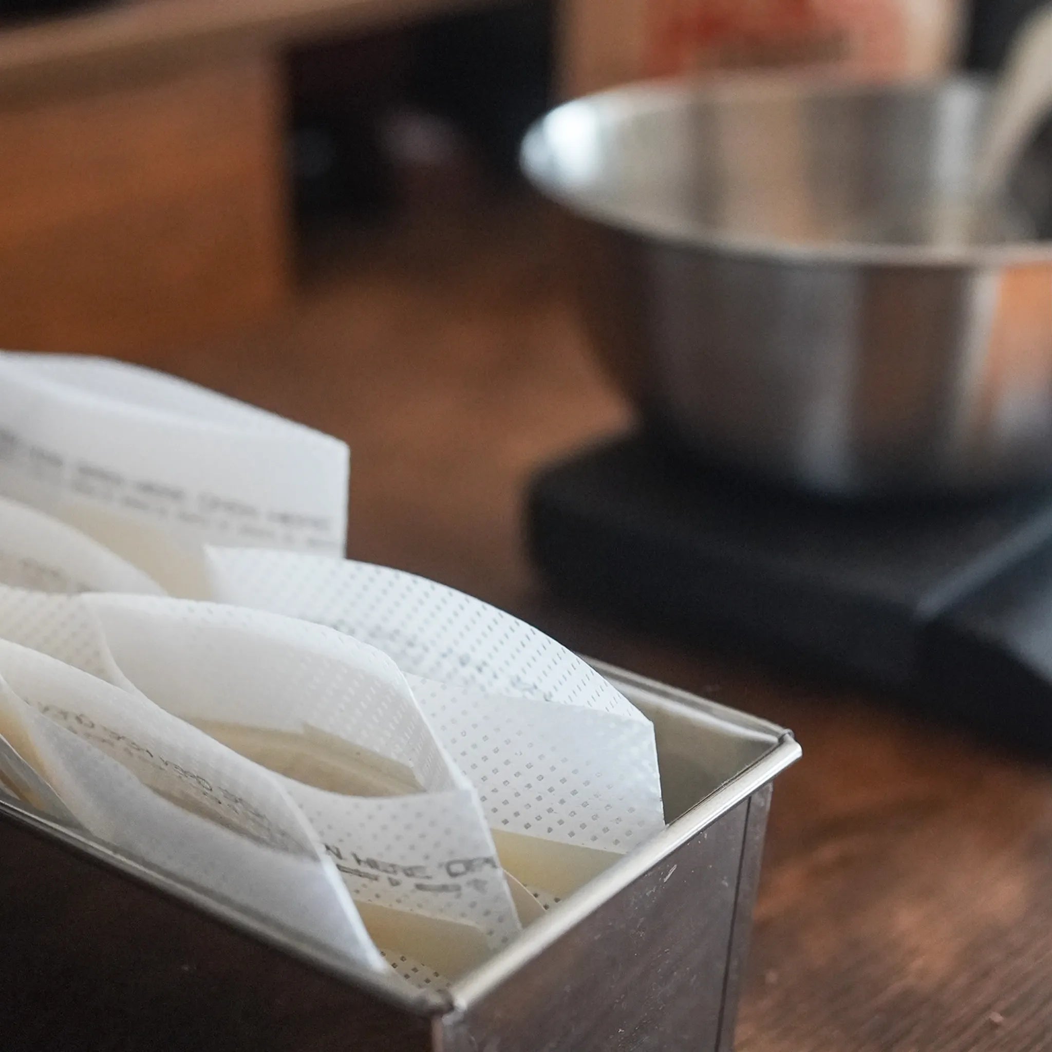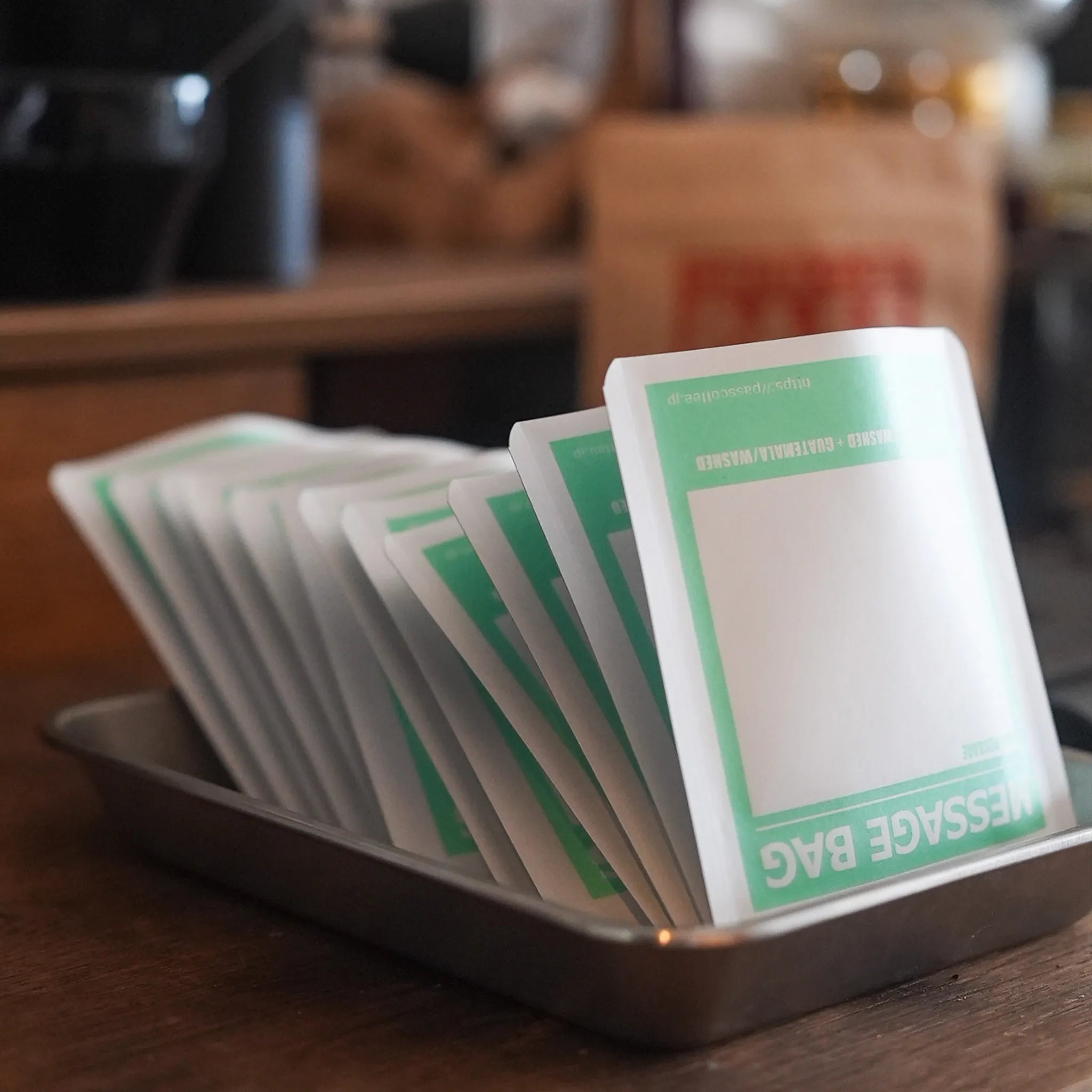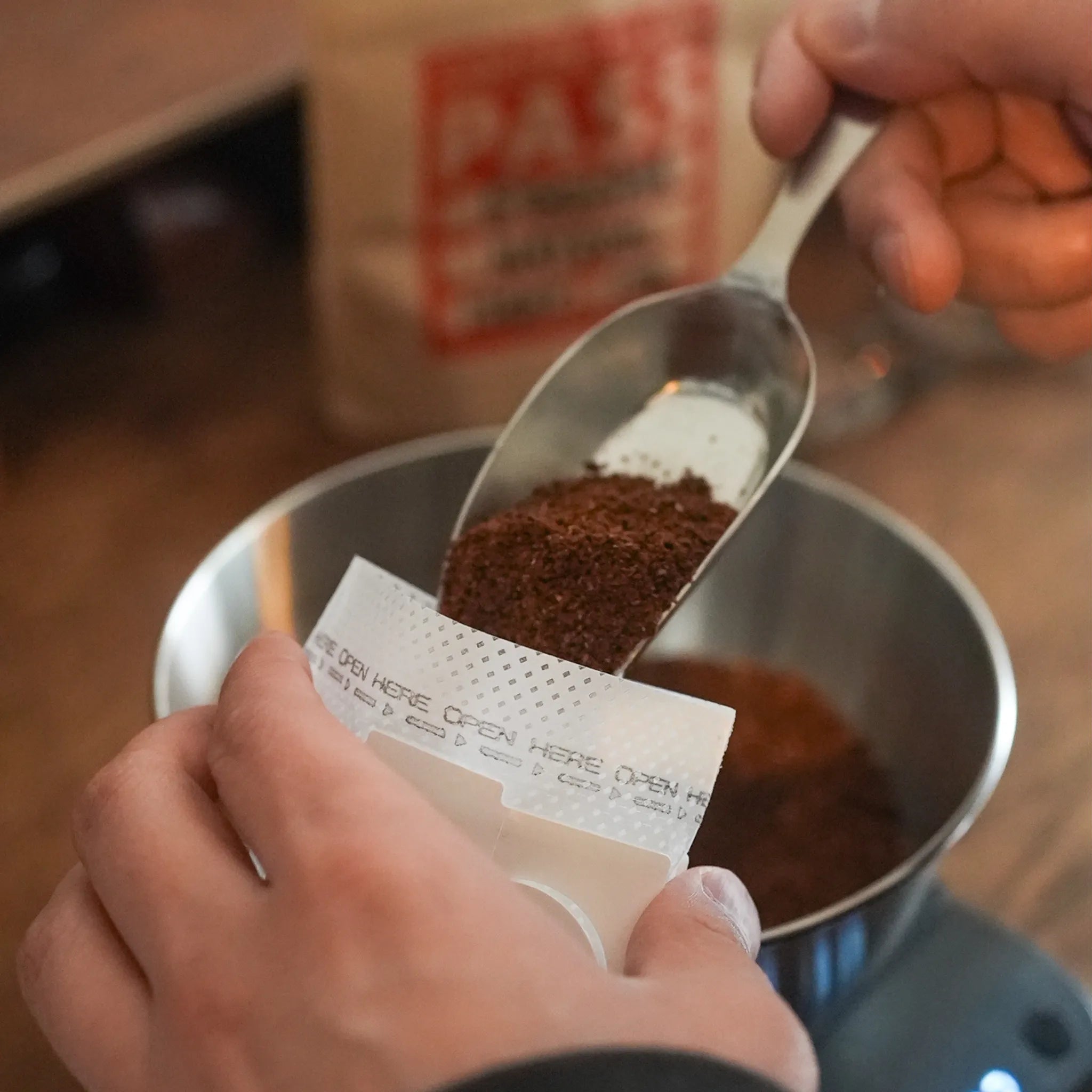 PASS COFFEEのドリップバッグは、豆を挽いてから一つずつ手詰めしています。届いたときにふわっと広がる香りも、一緒に楽しんでください。