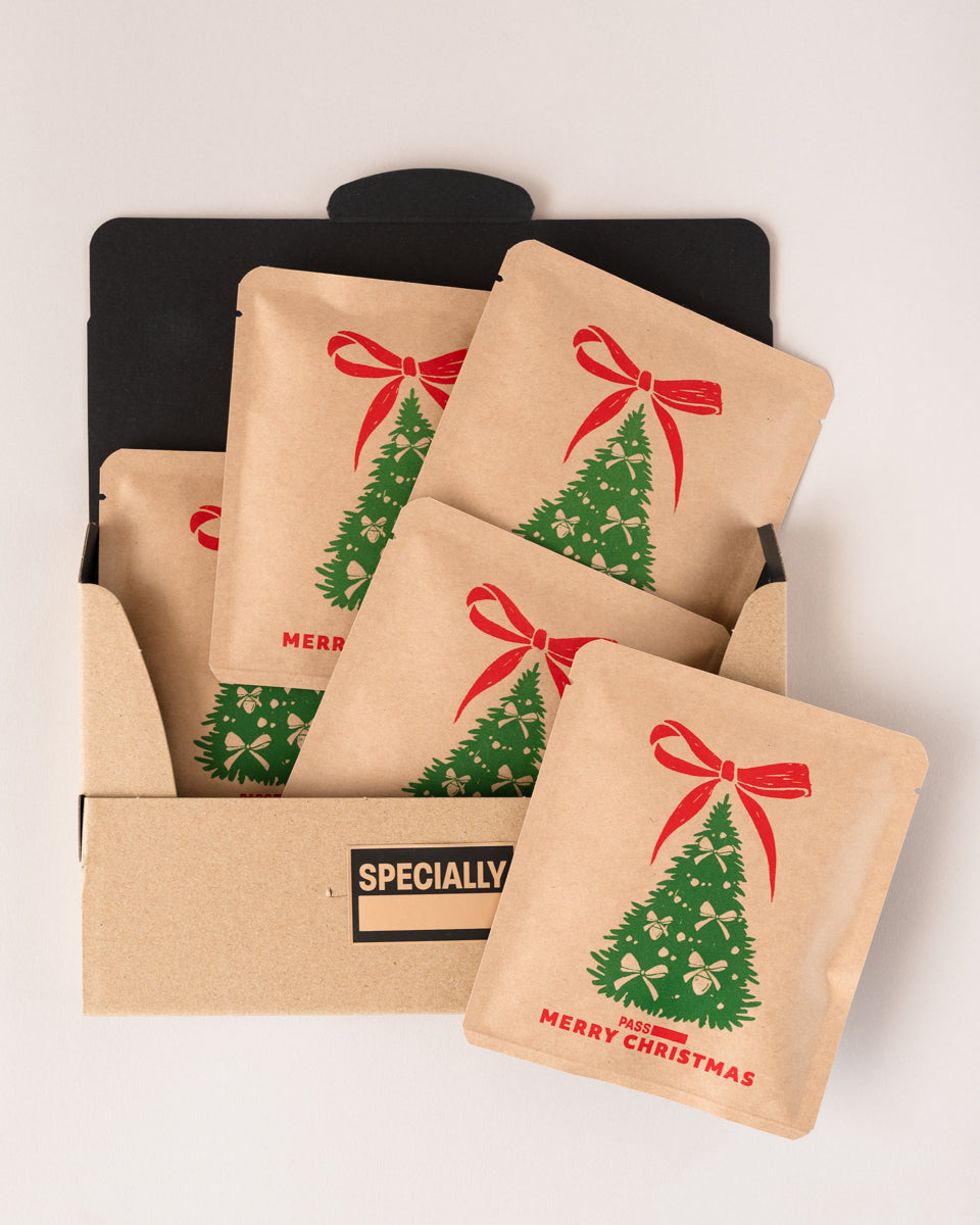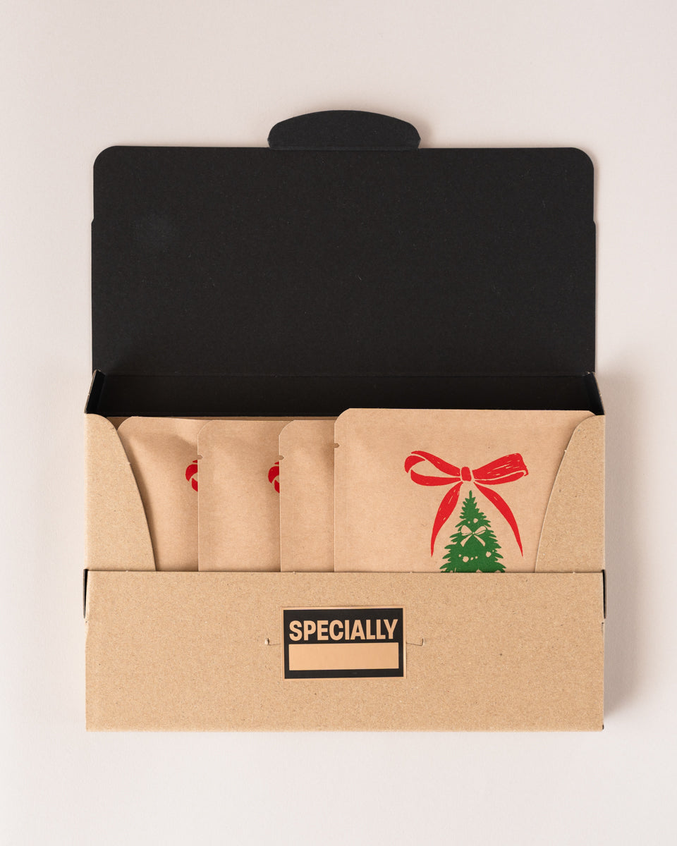 クリスマス限定デザインのドリップバッグを、特別なギフトボックスに詰め合わせました。